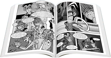 Kick it old-school with a Traditional Comic Book sized at 6.625" x 10.25". Our Traditional Comic Book format can be bound with a budget-friendly Saddle-Stitched (Stapled) Binding or print your series anthology with our Perfect Binding.